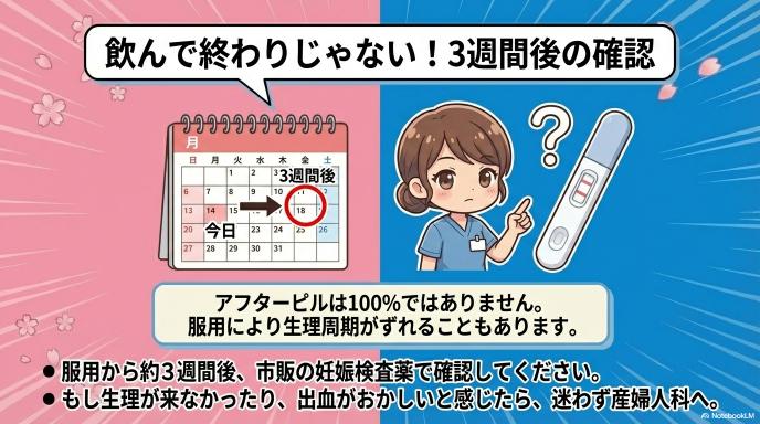 【重要】飲んで終わりじゃない!「3週間後の妊娠検査」が必要な理由