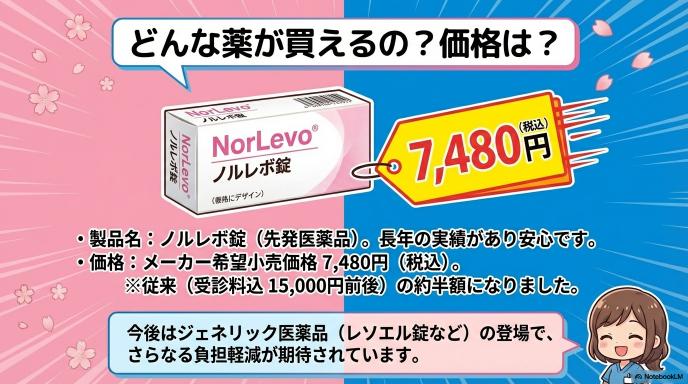 現在、薬局で購入できるようになった主な製品は、先発医薬品である「ノルレボ錠」です。これは長年医療現場で使用されてきた実績があり、安全性と有効性が確認されています。さらに今後は、同じ成分を含みながら価格を抑えた「ジェネリック医薬品(後発薬)」の市販化も期待されています。例えば「レソエル錠」などの後発薬が薬局で扱われるようになれば、購入者の経済的な負担がさらに軽くなり、より多くの人が必要な時にアクセスしやすくなる環境が整っていくでしょう。