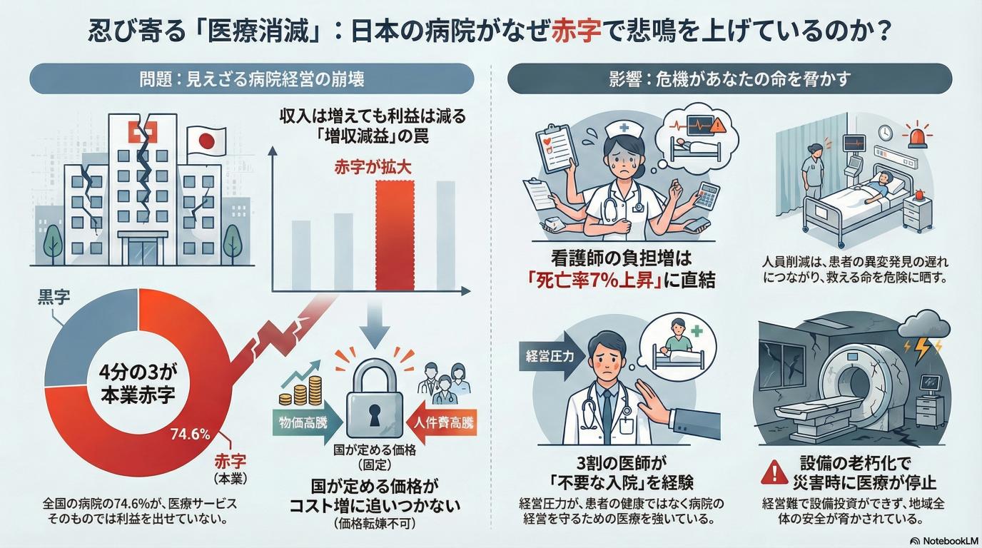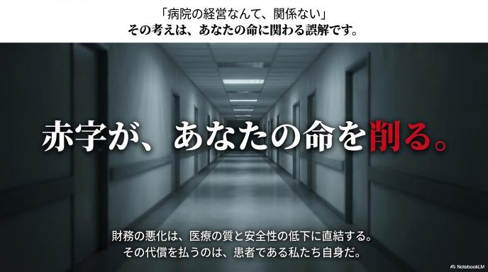 「病院の経営なんて、患者の自分には関係ない」――。その考えは、命に関わる誤解です。病院の赤字は、ダイレクトに「医療の質と安全性」に跳ね返ります。