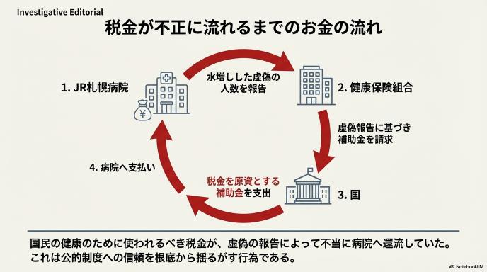 つまり、国民の健康増進のために使われるべき貴重な税金が、虚偽の報告によって不当に病院へ流れていたことになります。これは公的制度への信頼を根底から揺るがす行為です。