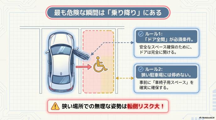 乗り降りが一番危ない:駐車場の取り方で安全が決まる